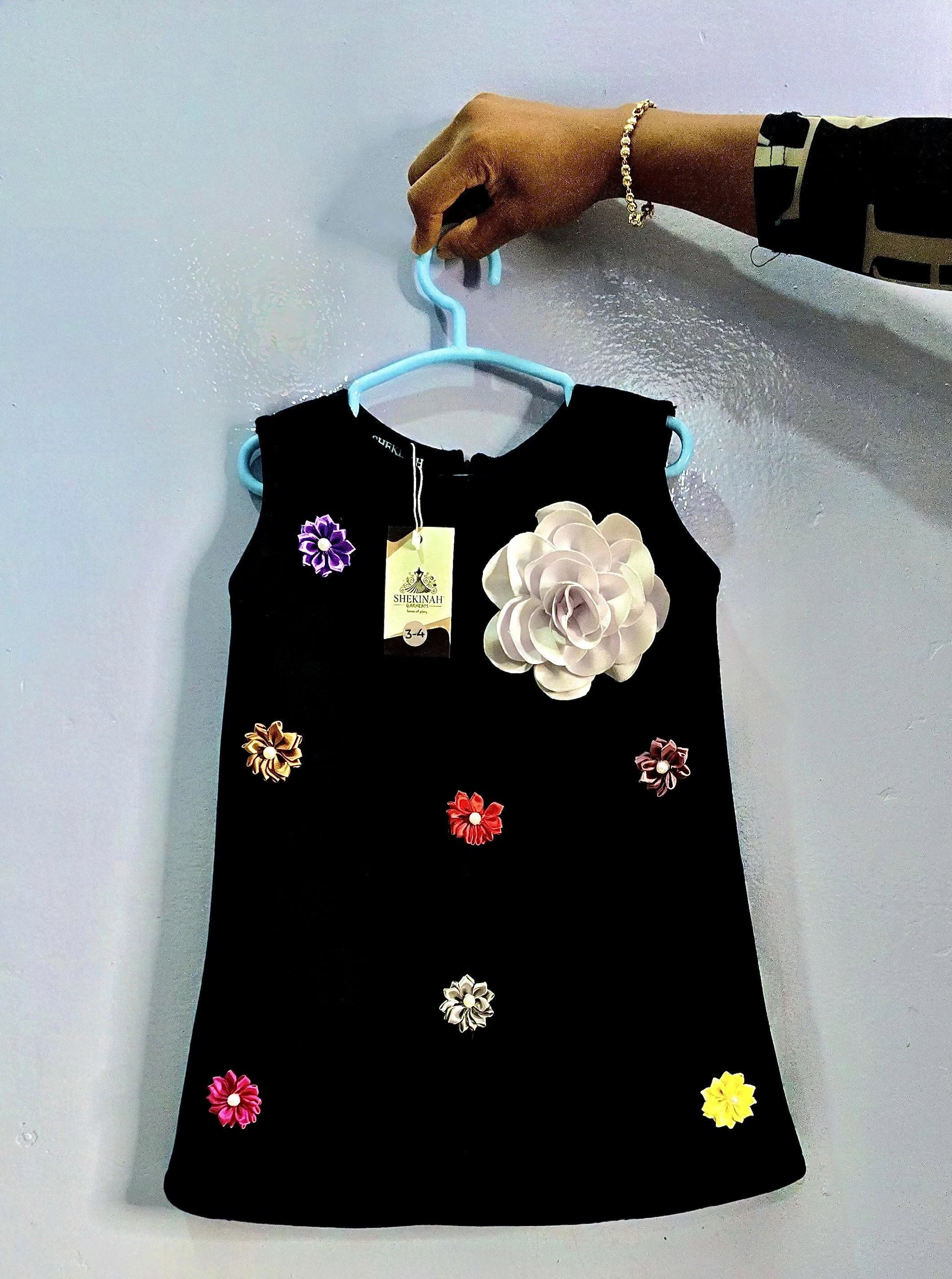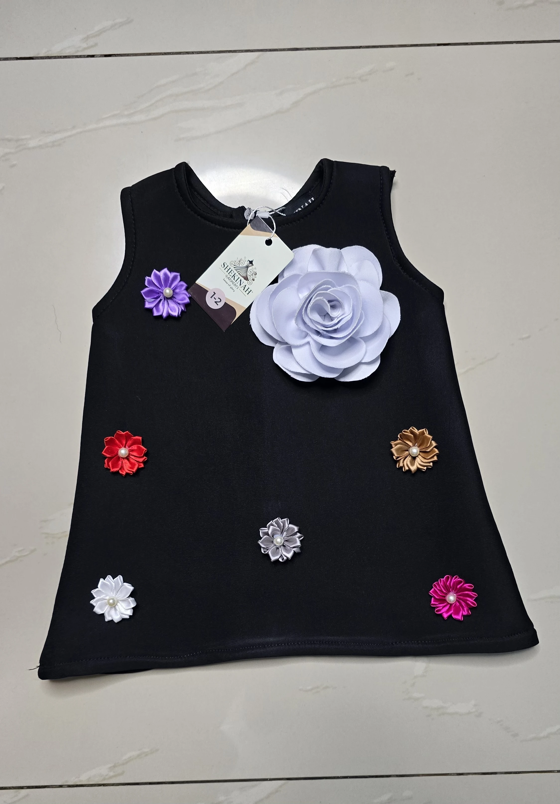 Zarabelle Dress Chic and charming, the Zara dress features a black base with tiny petal prints and a bold white rose detail at the heart side. Perfect for special moments with a touch of elegance. |